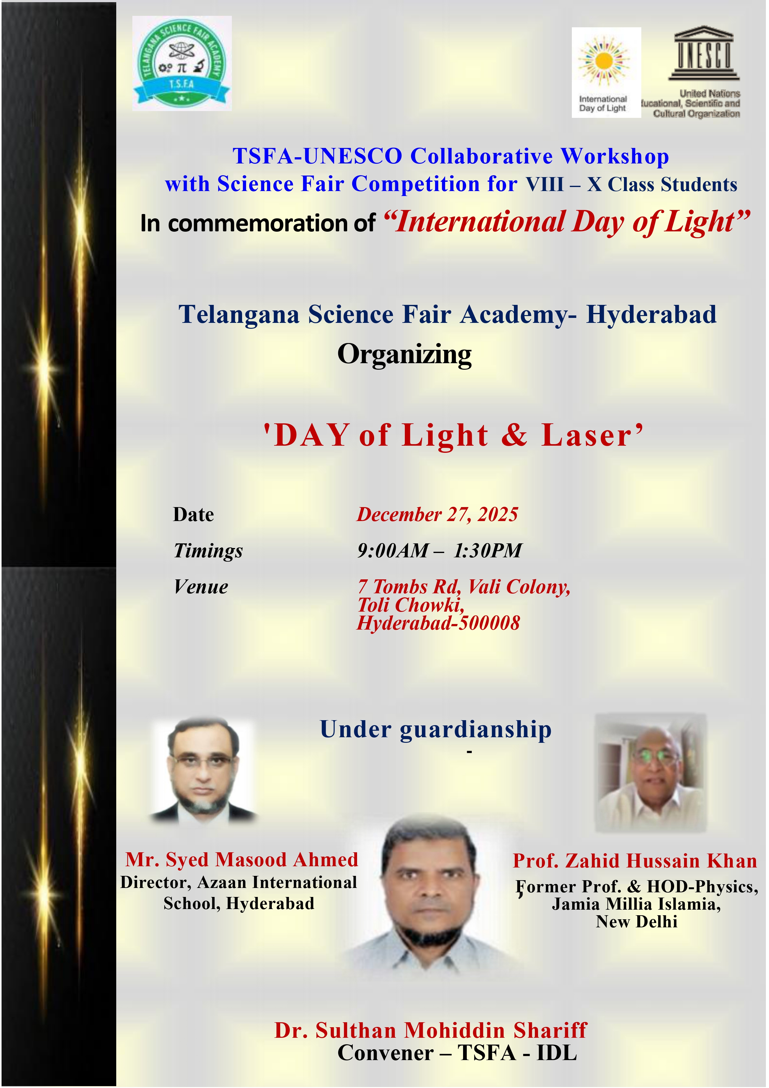 Ongoing Event: TSFA-UNESCO Collaborative Workshop with Science Fair Competition for VIII - X Class Students In commemoration of “International Day of Light Click Here to register now!